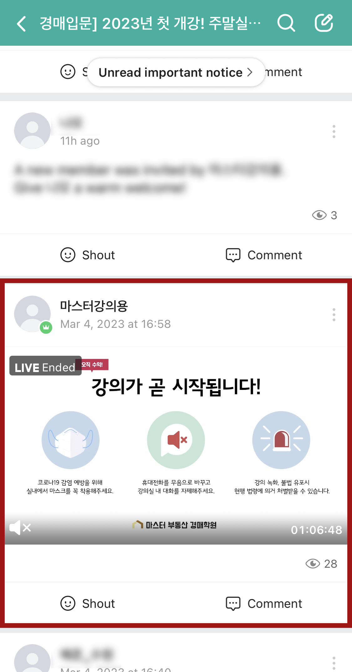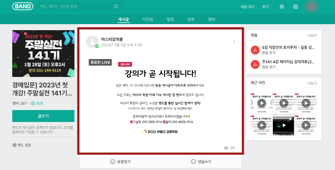 다시보기 가능한 지난 강의는 해당 밴드 내 동영상 게시물로 업로드되어있습니다.