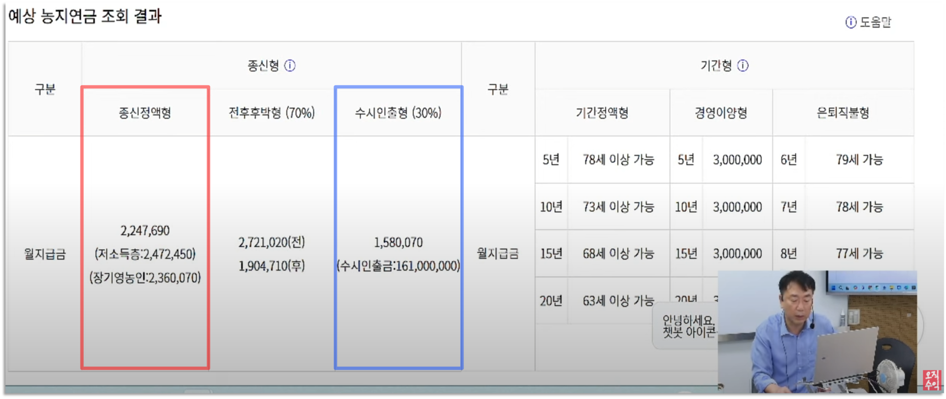 또 어느 누군가는 농지연금, 산지연금, 주택연금 등으로 노후준비를 하고 있습니다.