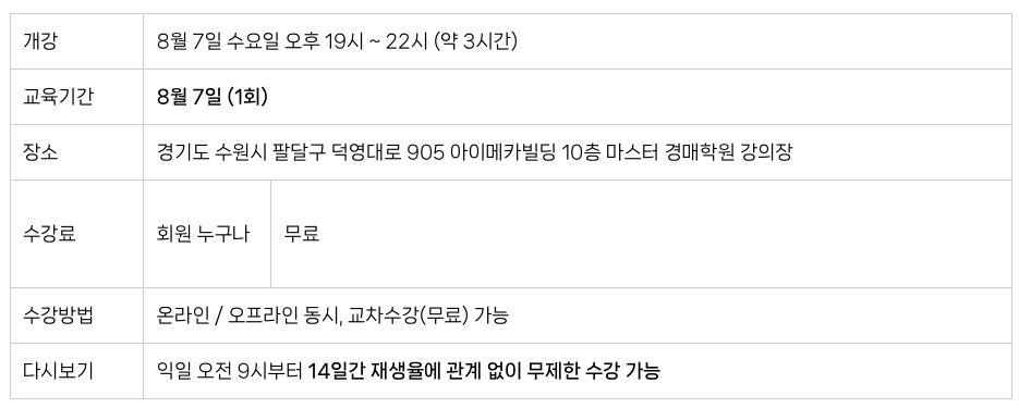 강의 당일에 수강 신청하여 결제하는 경우, 환불해드리기 어렵다는 점 양해해주세요.