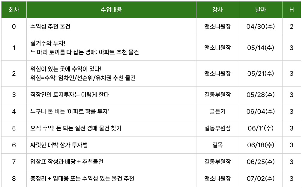 따라서 AtoZ식으로 처음부터 강의하지는 않습니다. 부동산에 아주 처음이라면, 왕초보반이나 아파트/경매 101 VOD를 추천드립니다.