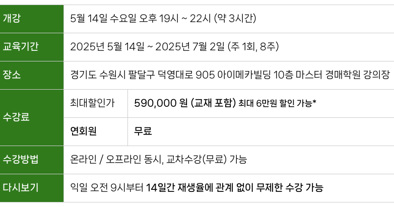 A. 경매 실전반의 모든 강의는 현장 강의와 동일하게 무료로 생중계 제공됩니다.