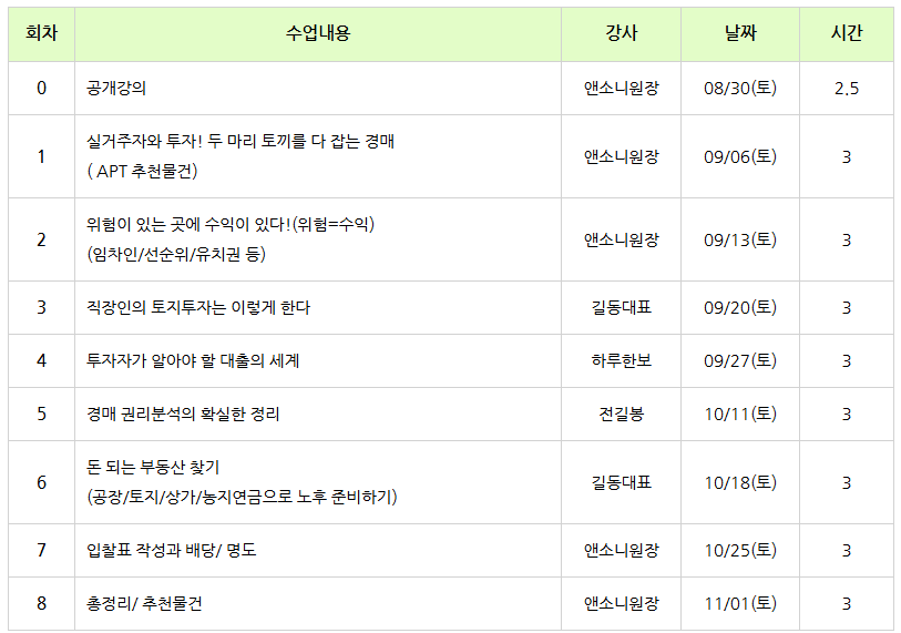 *강의 일정은 강사님 사정에 따라 변경 될 수 있습니다.