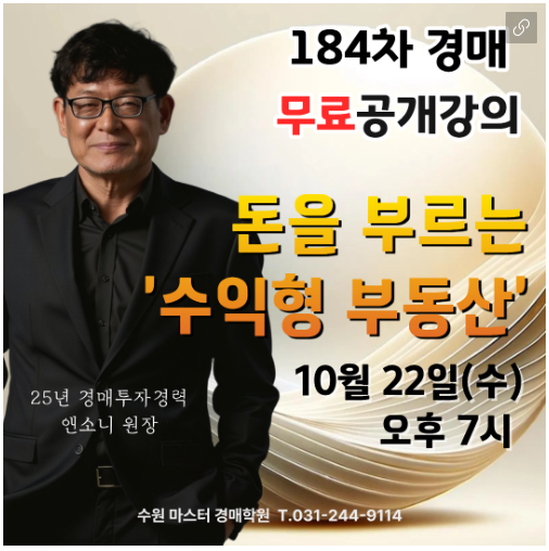 강의 녹화 자료(영상 및 음성 포함)의 저작권은 마스터경매학원이 전적으로 소유하며, 학원은 이를 독점적으로 운영, 관리, 배포할 권리를 가집니다.