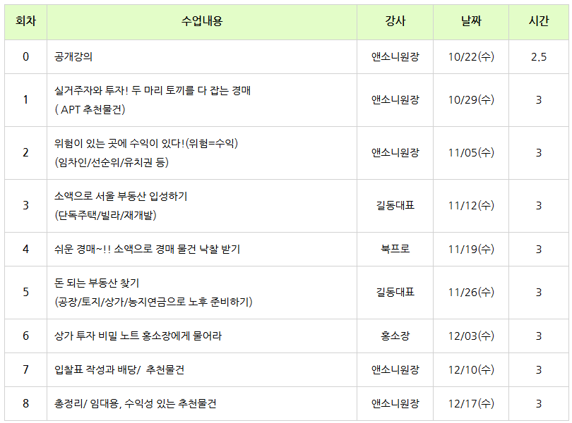 *강의 일정은 강사님 사정에 따라 변경 될 수 있습니다.
