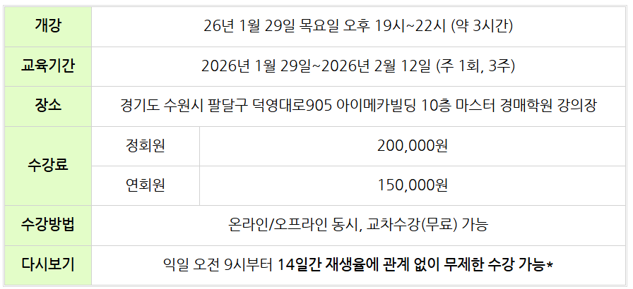 강의일정: 2026년 1월 29일(목) 주1회/ 총3회