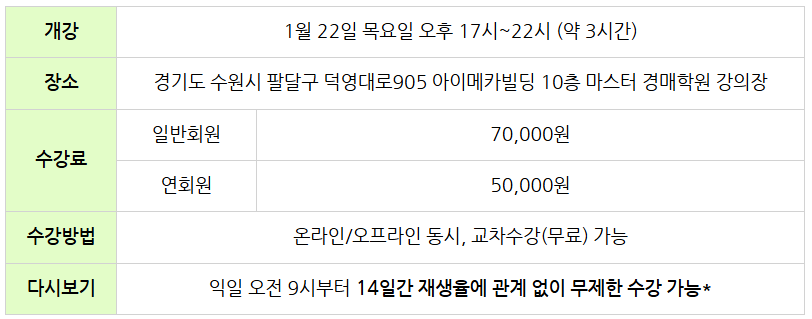 마스터경매학원은 강의 내용의 지연, 변경, 오류 등으로 인한 수강생의 손해에 대해 책임을 지지 않습니다.