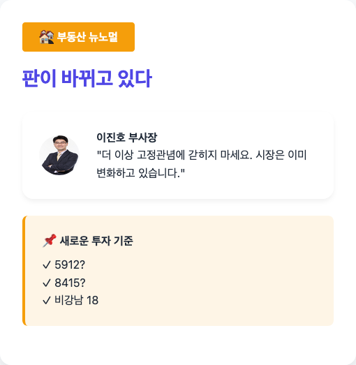 부동산 시장은 더 이상 ‘강남 불패’라는 고정관념에 갇히지 않는다. ‘5912’와 ‘8415’라는 표현은 비강남 지역까지 확대된 고가 아파트의 기준을 나타내며, 이는 부동산 시장의 중심축이 다양화되고 있음을 의미한다.