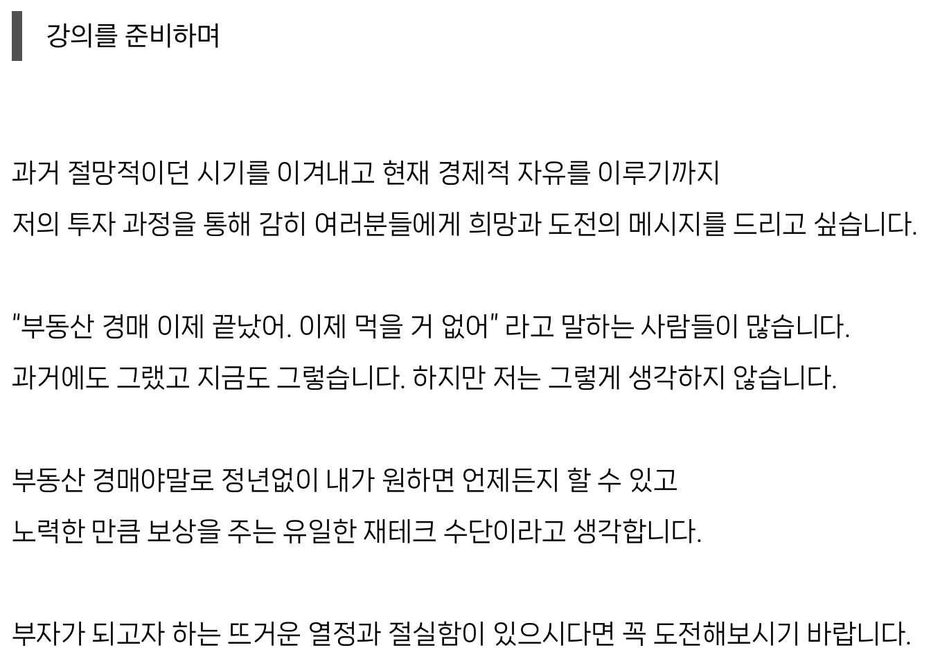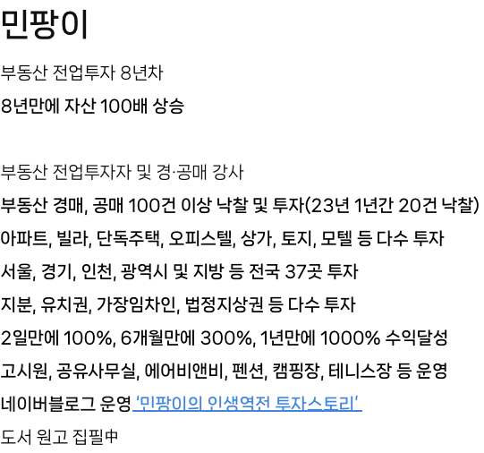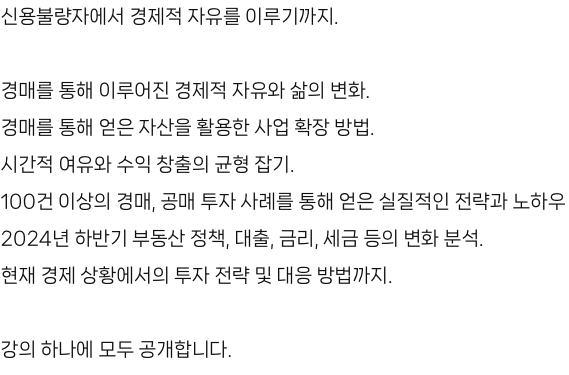 강의에서 제시되는 투자 사례와 수익률은 과거의 실적일 뿐, 미래 수익을 보장하지 않습니다.