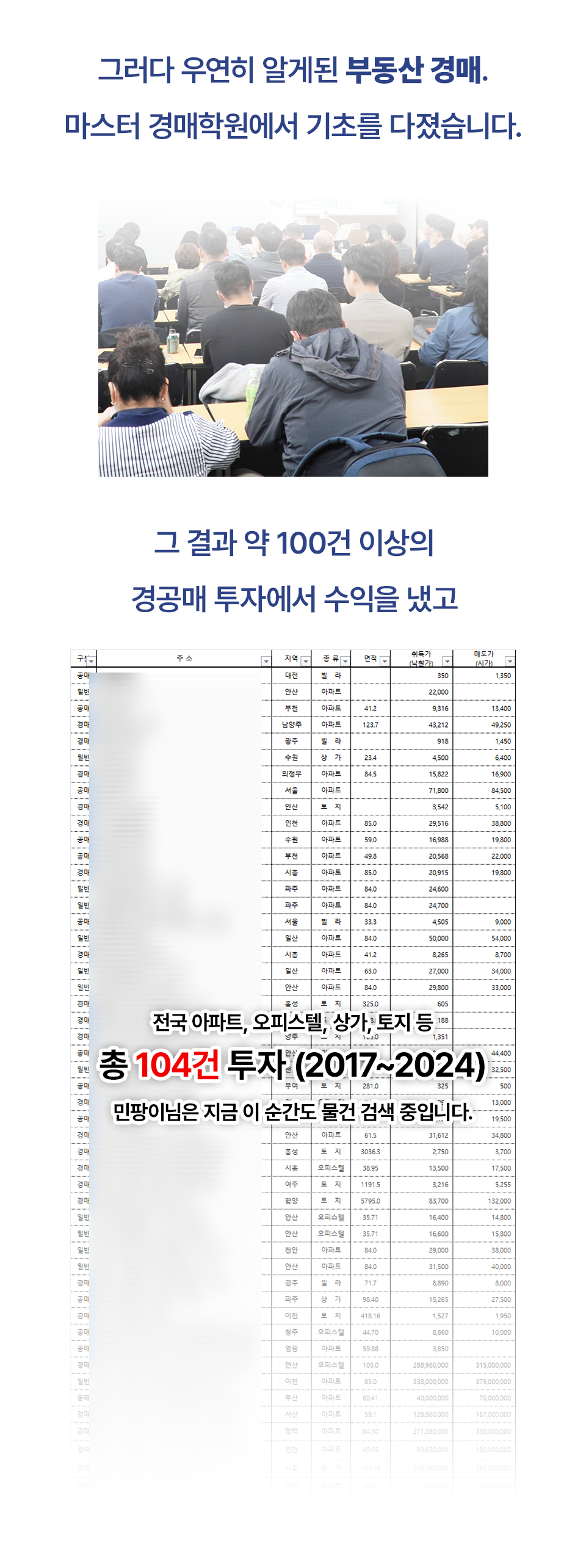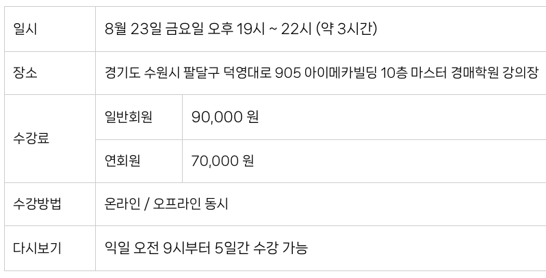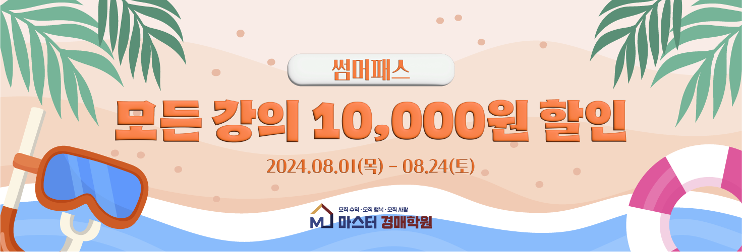 투자로 인한 손실, 손해, 세금 등 모든 결과에 대해 마스터경매학원에 이의를 제기할 수 없습니다.