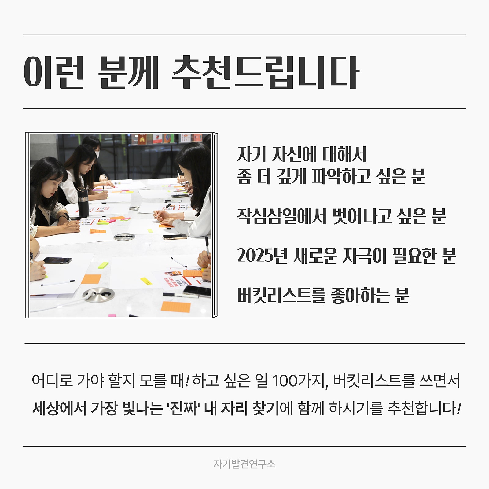 나만의 목표를 설정하는 워크숍을 통해