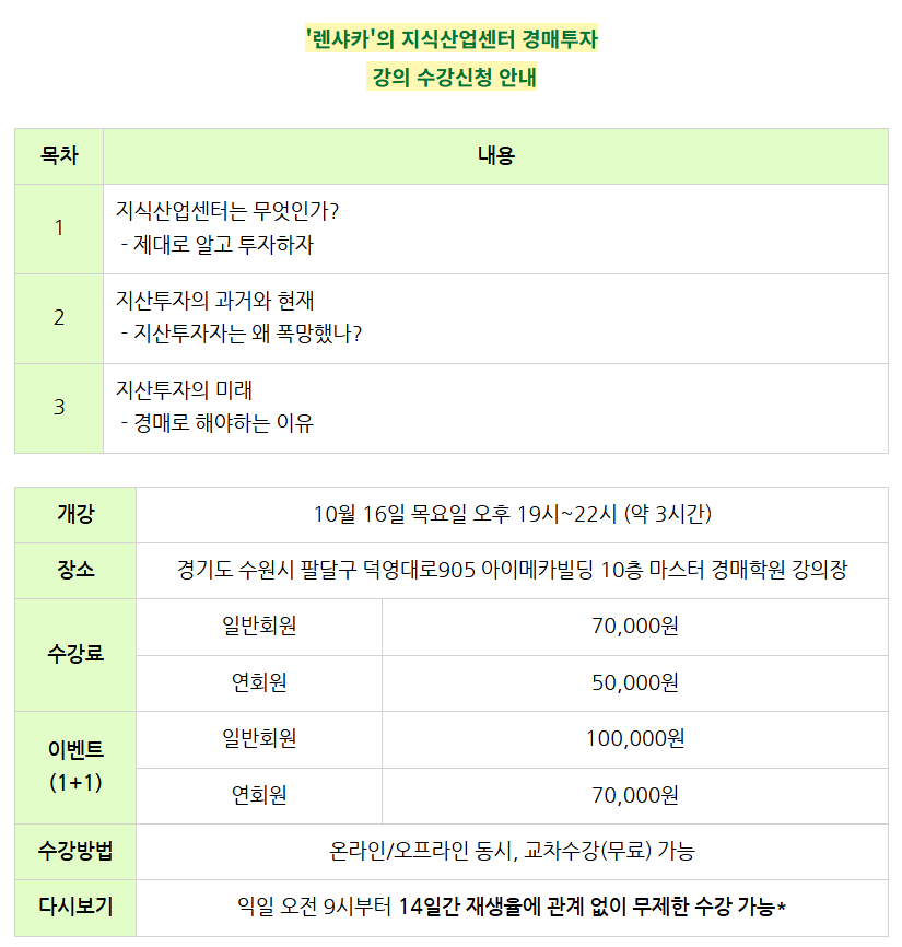 10/16(목) 지식산업센터 경매강의 [렌샤카]